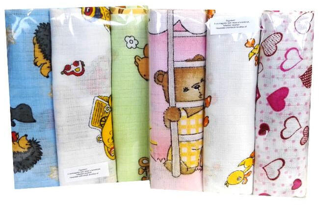 Színes nyomott mintás textilpelenka, 3 db/csomag.