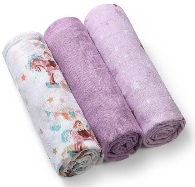 BabyOno 3 db-os színes, mintás bambusz textilpelenka - lila
