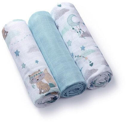 BabyOno 3 db-os színes, mintás bambusz textilpelenka - kék