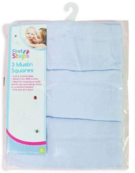 Pelenka szett/3db kék muszlinPelenka mérete: 60x60 cm