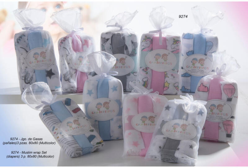 3 darabos, 1 színes, 2 mintás, egybecsomagolt, Gamberritos pelenka szett, amely a ti csemetétek számára is hasznos lehet. Használható akár nyálkendõnek, büfikendõnek, babakocsin/hordozón napellenzõnek is.