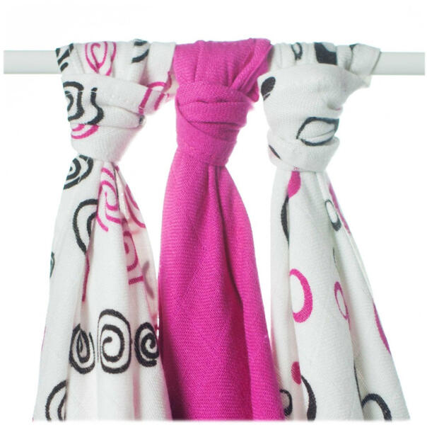 Kikko Bambusz pelenkák Spirals&Bubbles 70x70 (3 db) - magenta, magenta