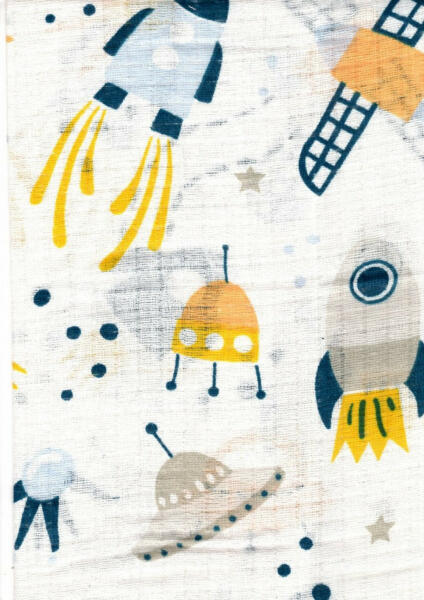 Mintás textil pelenka 1db-os - Űrhajó kék/sárga