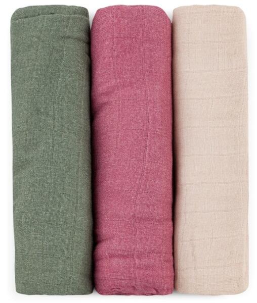 Petite&Mars Bambusz muszlin 3 db-os pelenka szett 68 x 68 cm - Moussy Botani rózsaszín/bézs