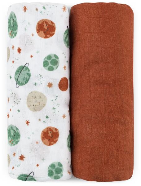 Petite&Mars Misty bambusz muszlin fürdőlepedő 120x120cm, Celestial Planets, 2db