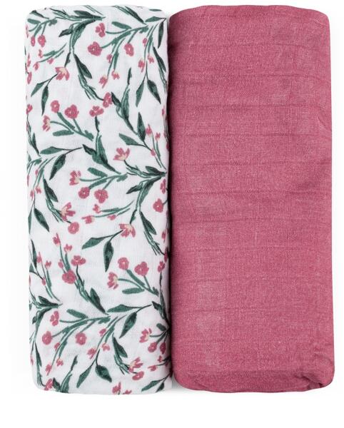 Petite&Mars Misty bambusz muszlin fürdőlepedő 120x120cm, Pink Meadow, 2db