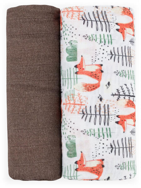 Petite & Mars Bambusz Muszlin Pelenka Szett 2db Misty Forest Fox 120x120cm - Puha, Légáteresztő és Bőrbarát Pelenkák Újszülötteknek