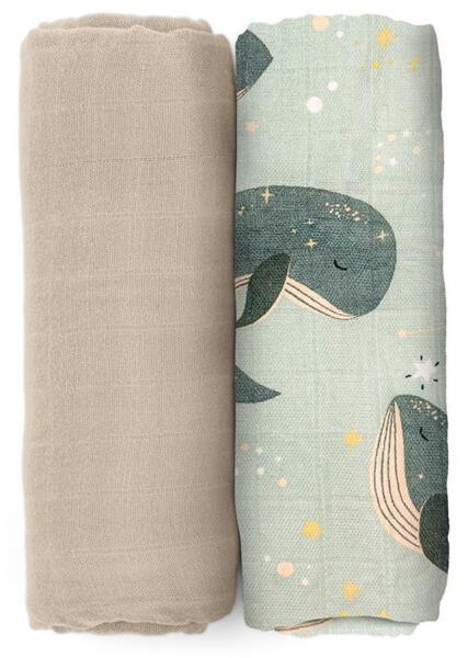 Petite & Mars Bambusz Muszlin Pelenka Szett 2db Misty Whale Song 120x120cm - Puha, Légáteresztő és Bőrbarát Pelenkák Újszülötteknek