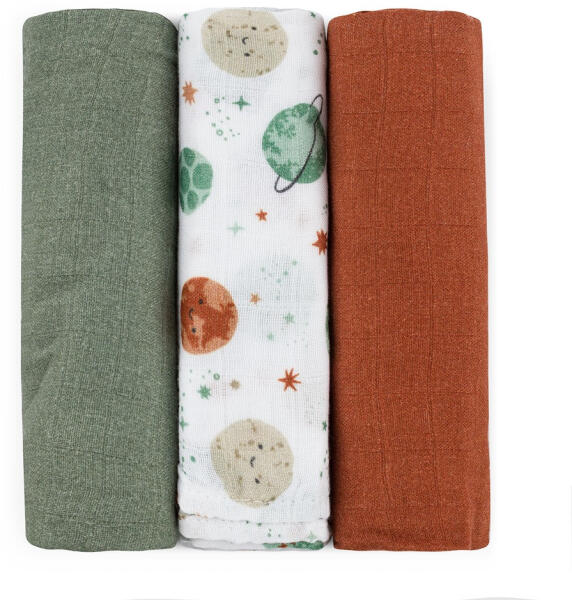 Petite & Mars Bambusz Muszlin Pelenka Szett 3db Moussy Celestial Planets 68x68cm - Puha, Légáteresztő és Bőrbarát Pelenkák Újszülötteknek