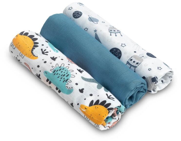 Sensillo 3 db-os muszlin pamut pelenka szett - Kék világűr dínó