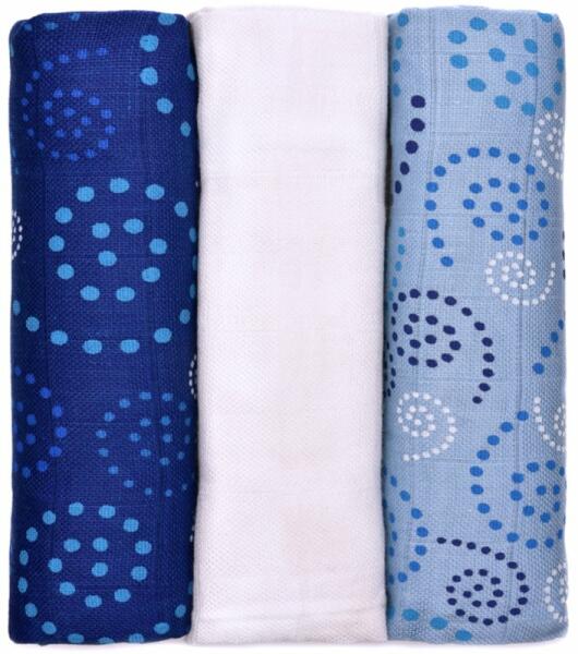 T-tomi prémium minőségű BIO bambusz textil pelenka, Kék spirálok, 3db